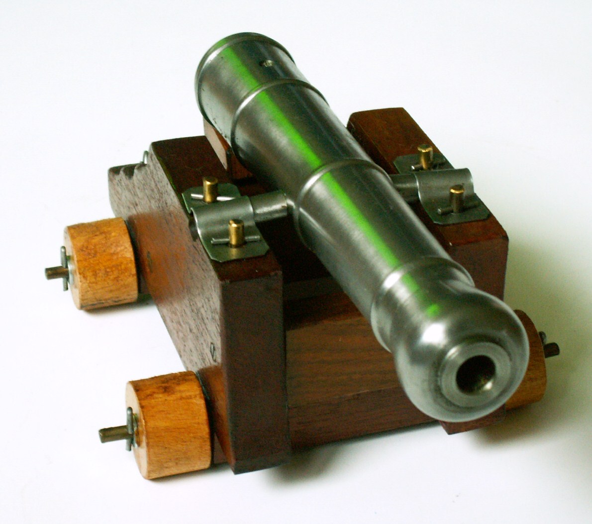 Délka-27cm,šířka-14cm,výška-13,5cm, délka hlavně-25cm Od 15.století patřila děla k běžné výzbroji válečných lodí. Z počátku se používala děla komorová, jejichž výhodou byla snadná ovladatelnost minimem mužů. Stačili dva lidé. Dělo mělo na konci hlavně odnímatelnou nábojovou komoru- Nabila se mimo dělo, a pak se vsunula zezadu do hlavně. Komorová děla nezajišťovala dostatečnou počáteční rychlost střely,protože nábojové komory špatně těsnily a docházelo ke značnému úniku plynů. Proto koncem 15.století převládla děla uložená na kolových lafetách.Tato děla se nabíjela zepředu. Po výstřelu zpětný ráz způsobil, že dělo odjelo ze svého postavení dozadu. Tento posun byl omezen lany, která byla protažena kroužky na lafetě a přichycena k vnitřní části boku lodi. Hlaveň děla po jeho popojetí vzad byla přístupná z paluby a dělostřelci mohli dělo znovu nabít a přirazit zpět do palebného postavení. Rychlost palby byla malá a účinný dostřel děl v této době byl okolo 300 – 500 m.